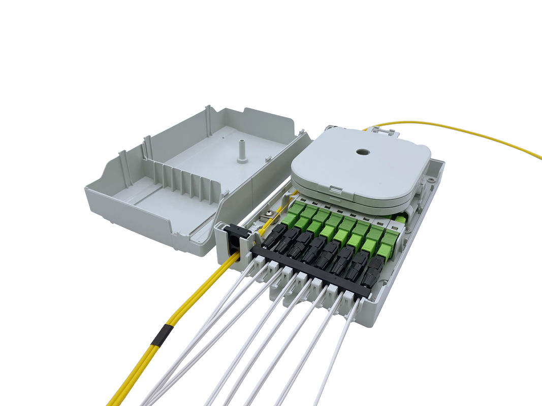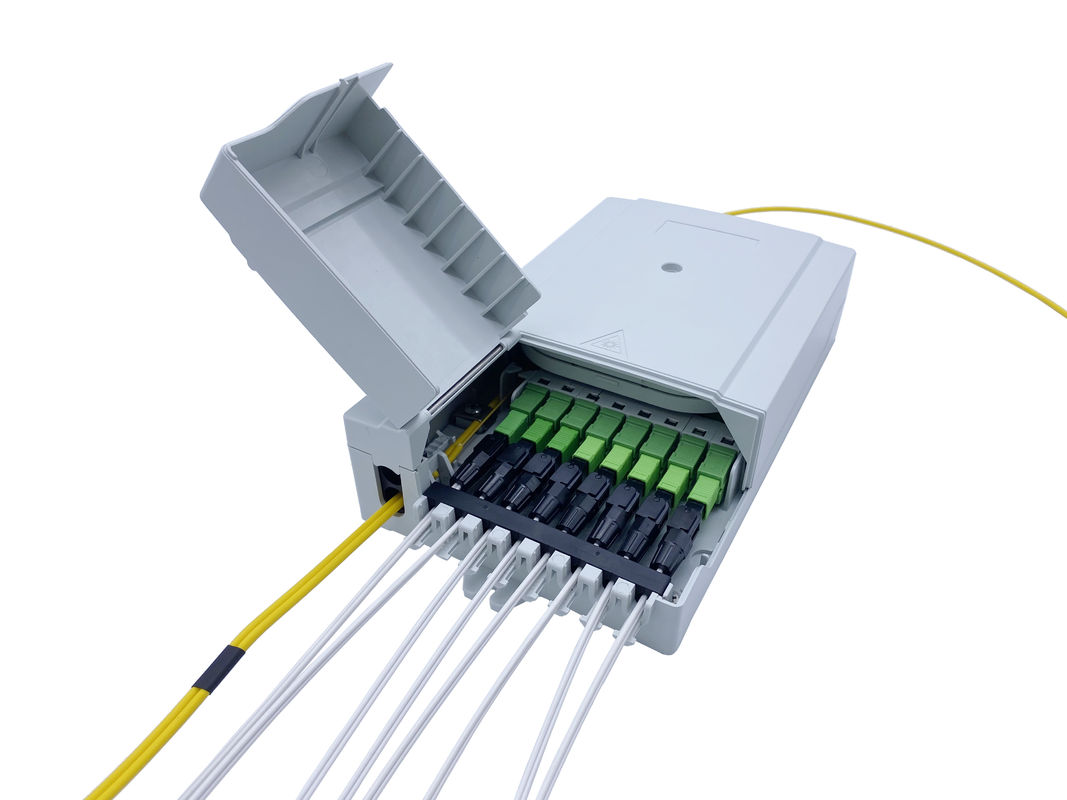 IP54 8 Port FTTH Fiber Optical Termination Box Anti UV Shocking Resistance Grey PC Alloy