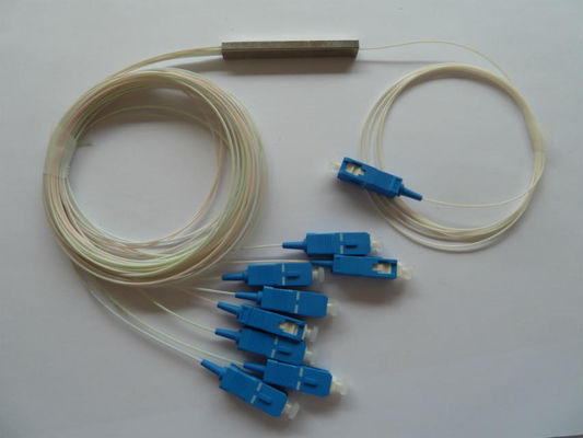Modul mini splitter Fiber Optic PLC / pembungkus PLC 1,5 liter tanpa balok 0.9mm dengan konektor SC / UPC single mode