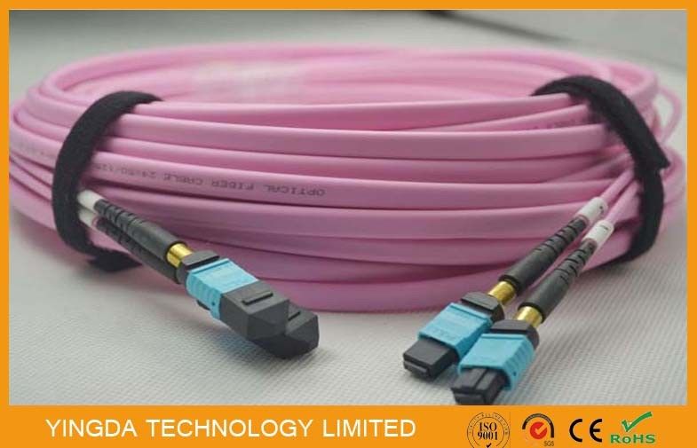 24 Serat Mpo Mtp Patch Cable, Kabel Pusat Data Mpo Konektor Om4 Kabel datar