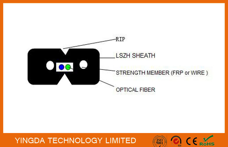 Kabel FTTH Drop Indoor Kabel Distribusi Serat Optik FRP Baja G657A2 LSZH